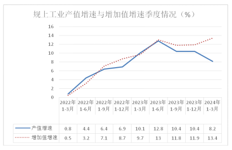 2024年一季度,全區(qū)規(guī)模以上工業(yè)總產(chǎn)值比上年同期(下同)增長(zhǎng)8.2%,增加值增速為13.4%,位列全市第三(10個(gè)板塊)。